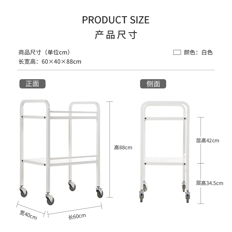 MT metal beauty tool car beauty salon cart white double iron storage car hand push with wheels