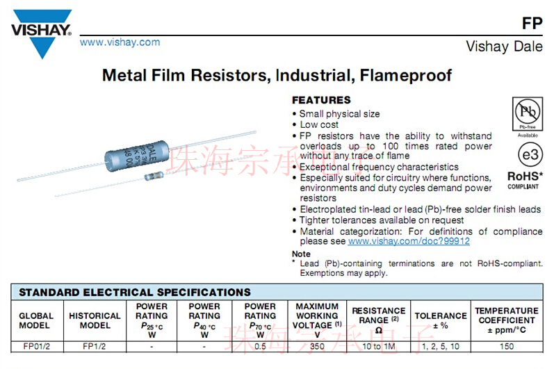 VISHAY DALE FP1 2 18K 0 5W 5W 1 2W Imports of copper foot metal film resistance
