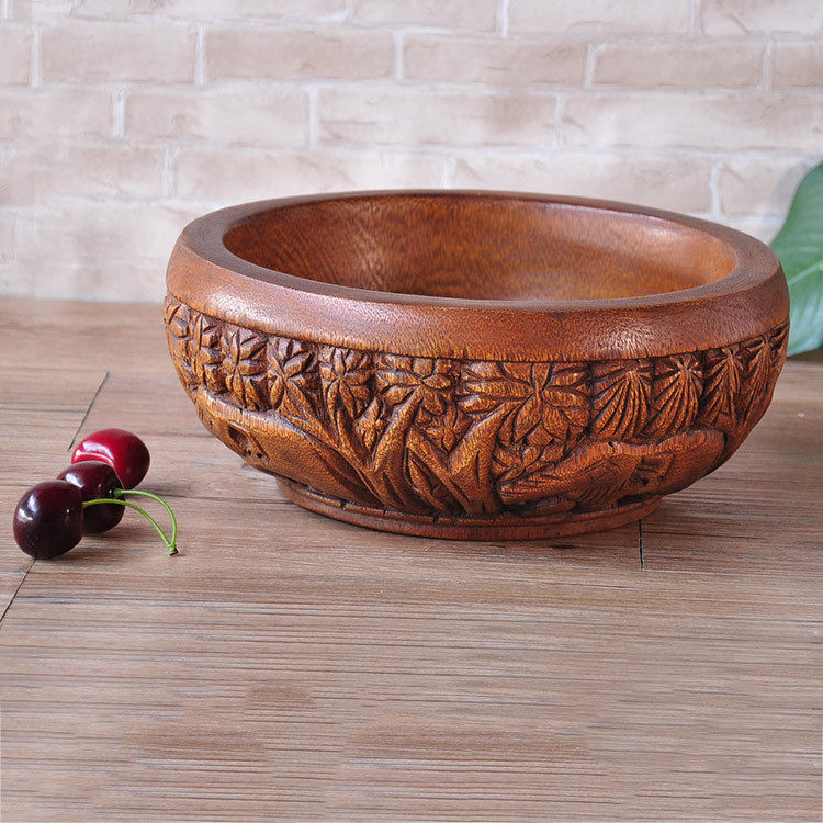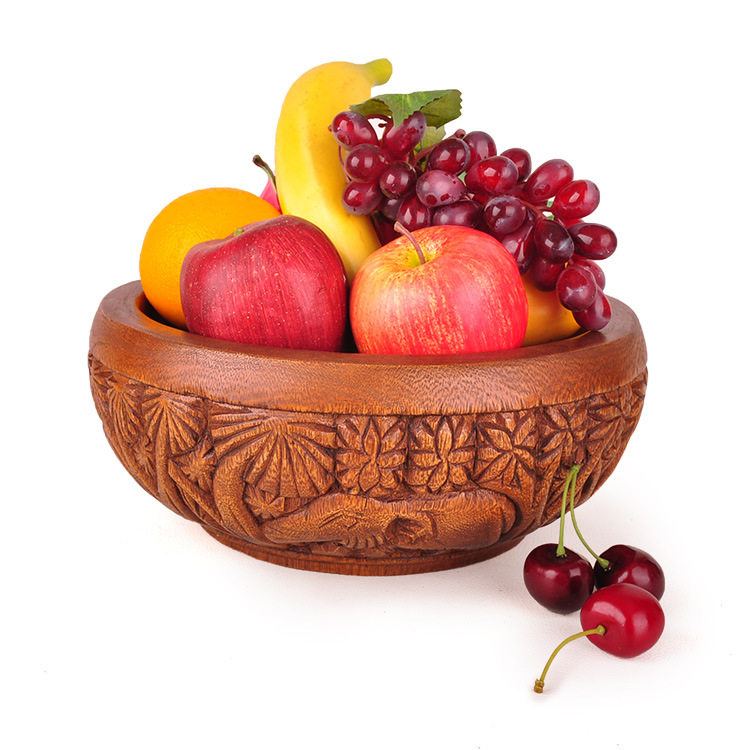 Thailand home Thailand imported wooden carving fruit plate retro solid wood carving dried creative fruit pot handmade fruit basket