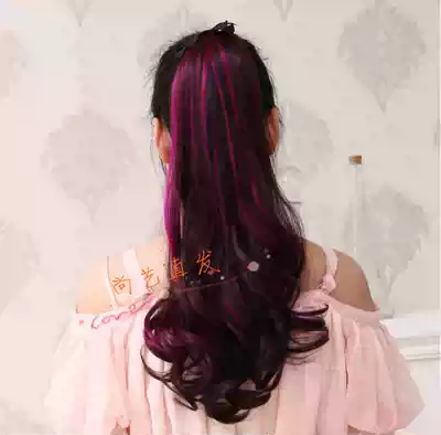 True hair ponytail wig female 3D pick dyeing 55 long purple pear flower roll hot bundle type real hair hair hair piece