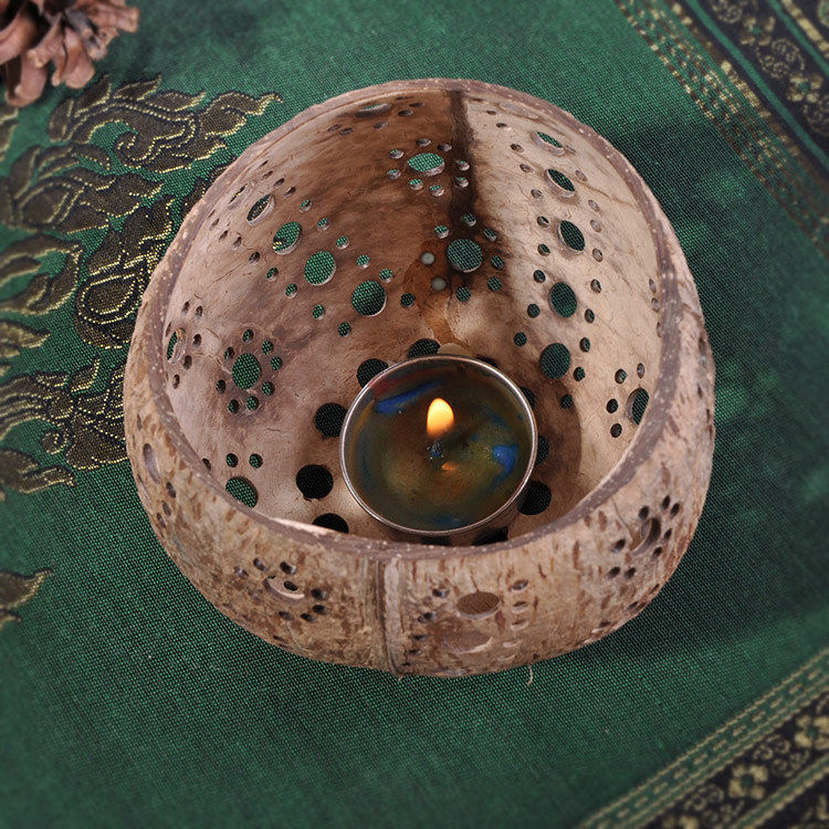 Thai wooden crafts imported solid wood creative coconut shell lamp romantic coconut shell candle holder creative time candle light cover