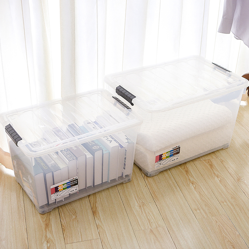 Color plastic storage box Transparent storage box Clothing finishing box With lid with pulley storage box King size set