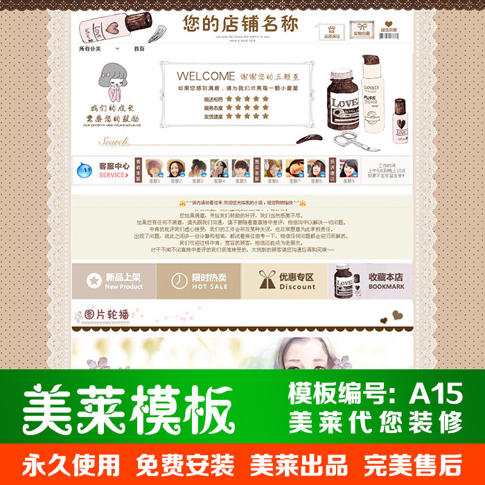 A15 Taobao shop decoration template skin care cosmetics makeup hand-painted simple atmosphere lazy version permanent free
