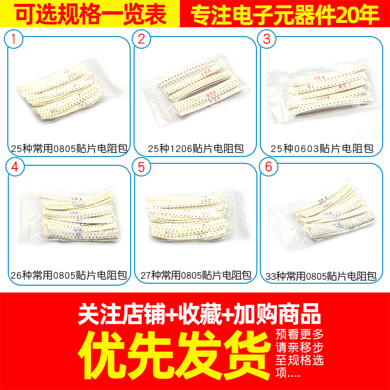 0805 0805 0603 1206 patch resistance packs 27 27 33 36170 36170 resistor capacitive packs sample element packs