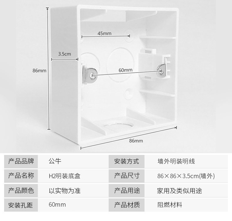 Bull Ming Line Ming dress Electric switch Base Ming Box deepening 86 Type of socket Box bottom box wire box junction box ultra-thin-Taobao