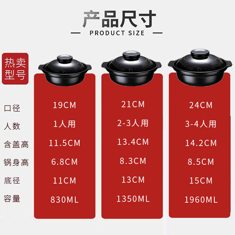 19CM caliber - for 1 person 7.5 inch black engraved pan 21CM caliber - for 2-3 people 8.5 inch black engraved pan 24CM caliber - for 3-4 people 9.5 inch black engraved pan 28CM caliber - for 4-6 people 10.5 inch black engraved pan 31CM large caliber - for 6-8 people 12 inch black engraved pan 34CM large caliber - suitable for 8-10 people 13 inch black engraved pan (3.9L carved flower soup pot + 7.5 inch engraved pan) set pot (3.9L carved flower soup pot + 8.5 inch carved flower pan) set pot (3.9L carved flower soup pot + 9.5 inch carved flower pan) set pot (5.45L carved flower soup pot + 8.5 inch carved flower pan) set pot (5.45L carved flower soup pot + 9.5 inch carved flower pan) set pot (5.45L carved flower soup pot + 10.5 inch carved flower pan) set pot
