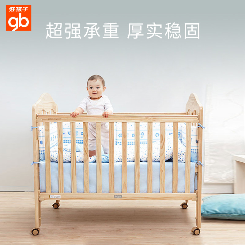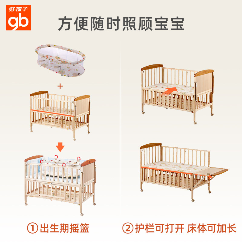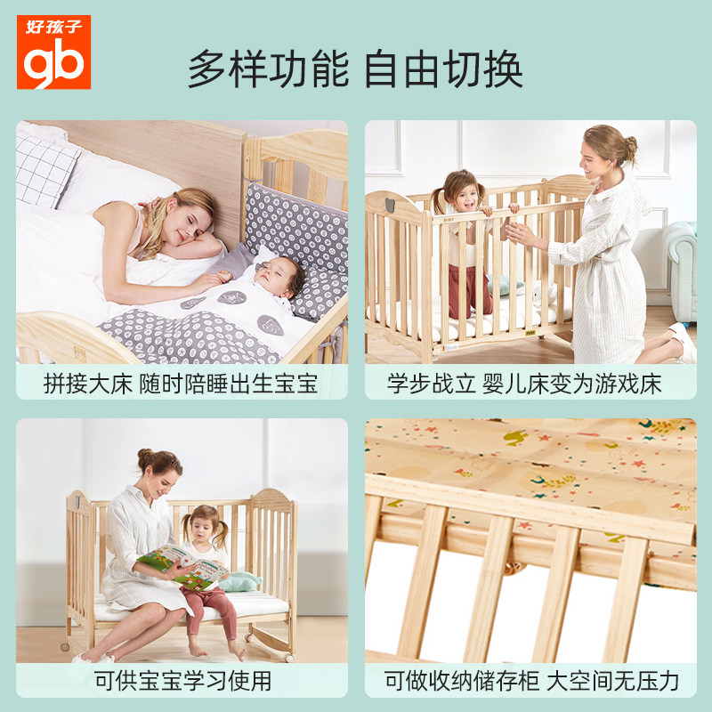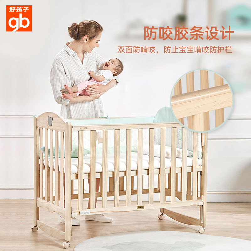 gb good kid baby cot solid wood no paint baby multifunction BB child bed pine wood cradle bed mosquito net MC283