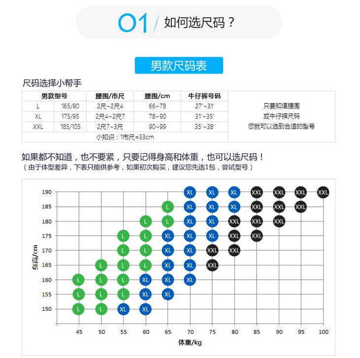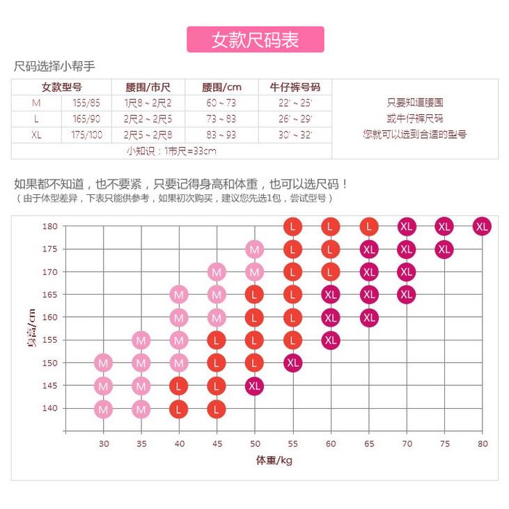Female M (Recommended 1 8-2 2 feet) Female L (Recommended 2 2-2 5 feet) Female XL(Recommended 2 5-2 8) Male L (Recommended 2 0-2 4 feet) Male XL