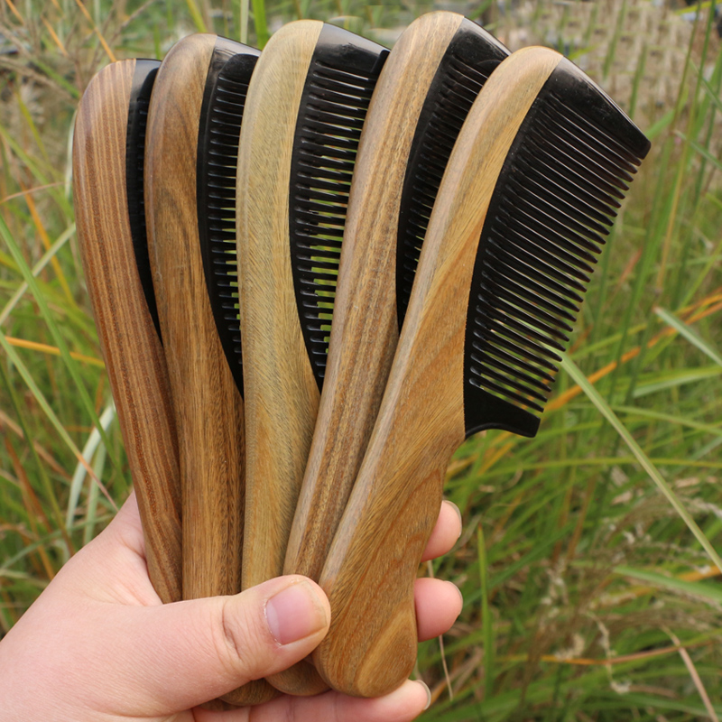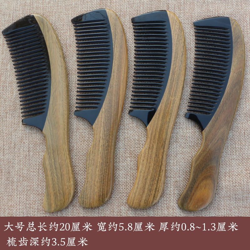Natural authentic green sandalwood comb corner comb dense tooth straight massage comb anti - static and round - hair comb large