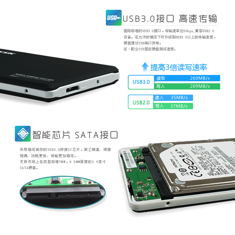 SSK Biao king USB3 0 hard drive box 2 5-inch serial port portable hard drive box SSD solid state drive adapter box Ultra-thin