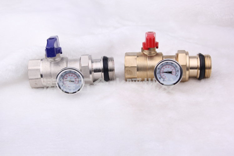 Floor heating water separator valve heating water inlet and return water separator straight ball valve with temperature gauge or pressure gauge
