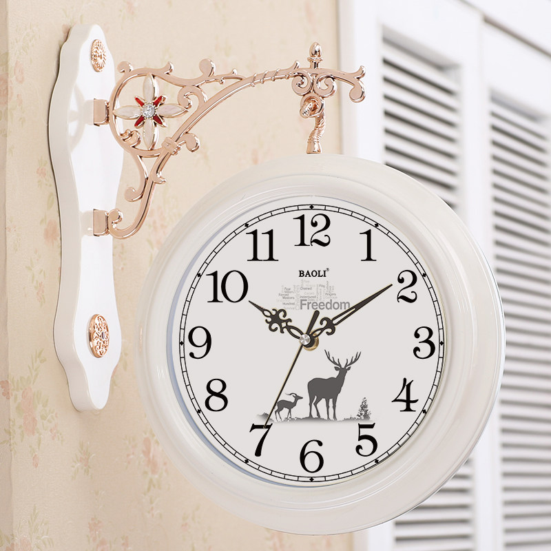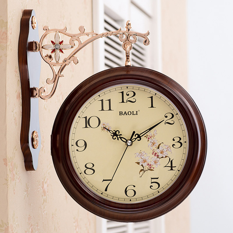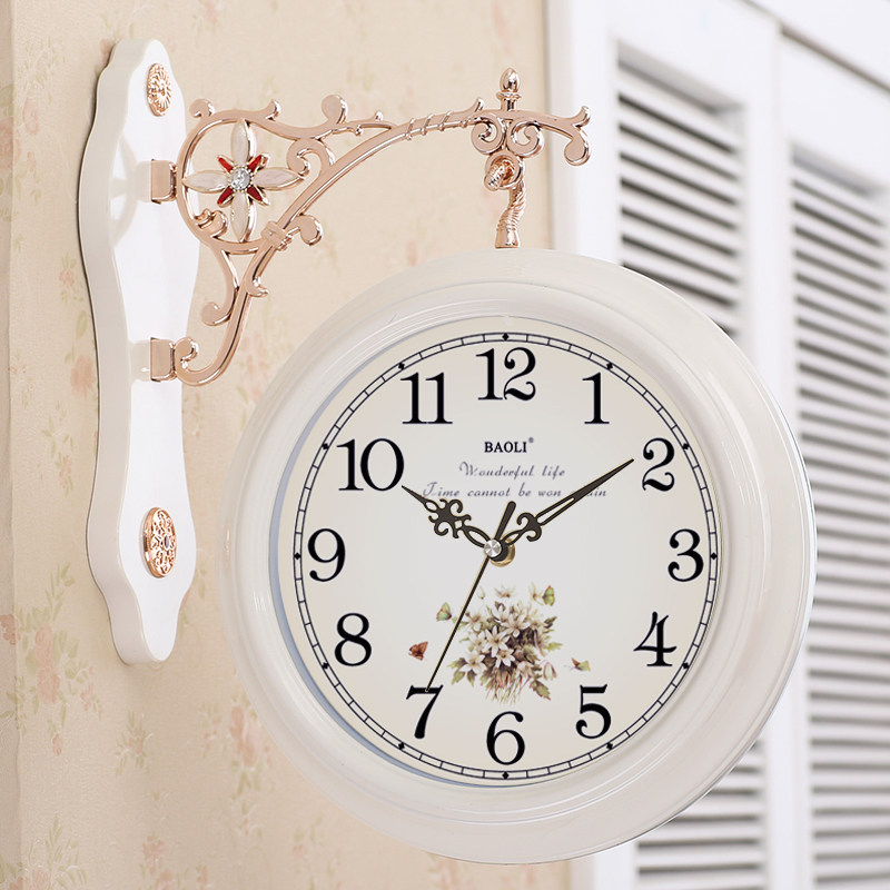 Double-sided wall clock European creative watch Living room silent pastoral clock watch Two sides personality fashion modern simple hanging watch