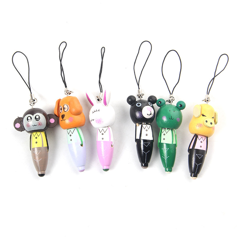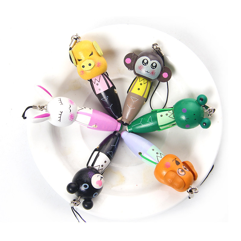 Mini Love Gift Creative Stationery Supplies Wholesale phone Hangpin Wooden Cardrum Ball Pen Primary School Prize