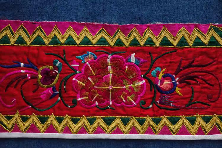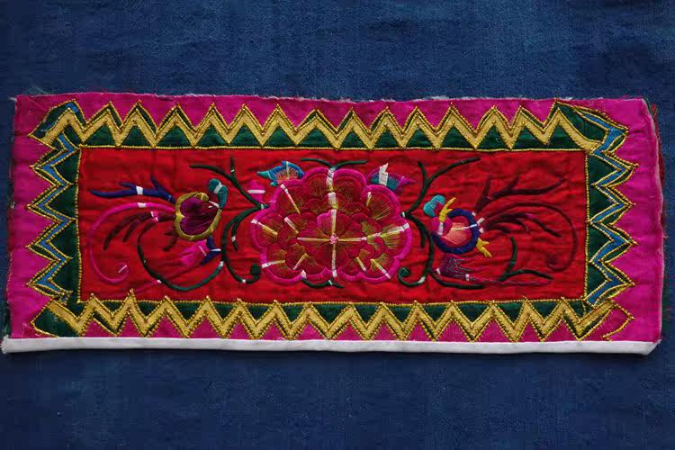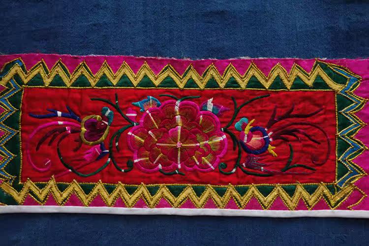 Guizhou Minority Miao Nationality Broken Thread Embroidery Old Embroidery Piece Whole Length 38*14cm hm-246