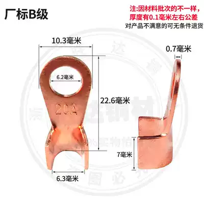 Open copper terminal block 20A wire nose Copper wire ear Cable copper connector Copper wiring nose terminal Class B thin 100