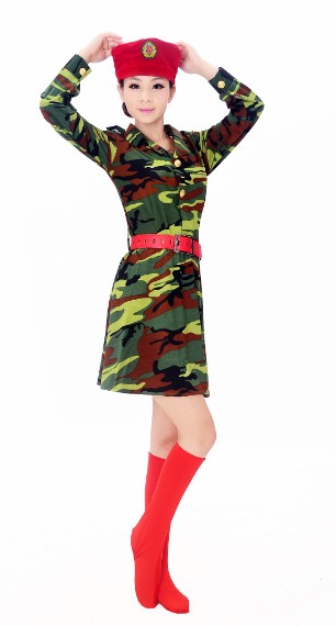 New Military Fatigues Camouflak Dance Plays Out Women's Dress Square Dance Long Sleeve Performance Suit National Stage Suit Army Green Summer