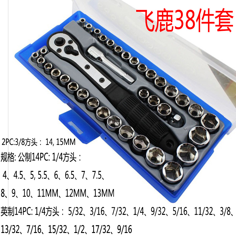 T-type 13-piece set with tool box Flying Deer 38-piece set with box Reinforced L10-piece set with box L-type 13-piece set with separate T-rod without sleeve Separate L-rod without sleeve