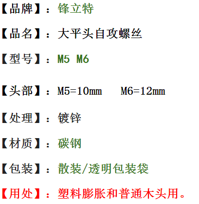 Bulk pressing cross large inclined head self-tapping screw galvanized furniture screws special large side sloping large flat head