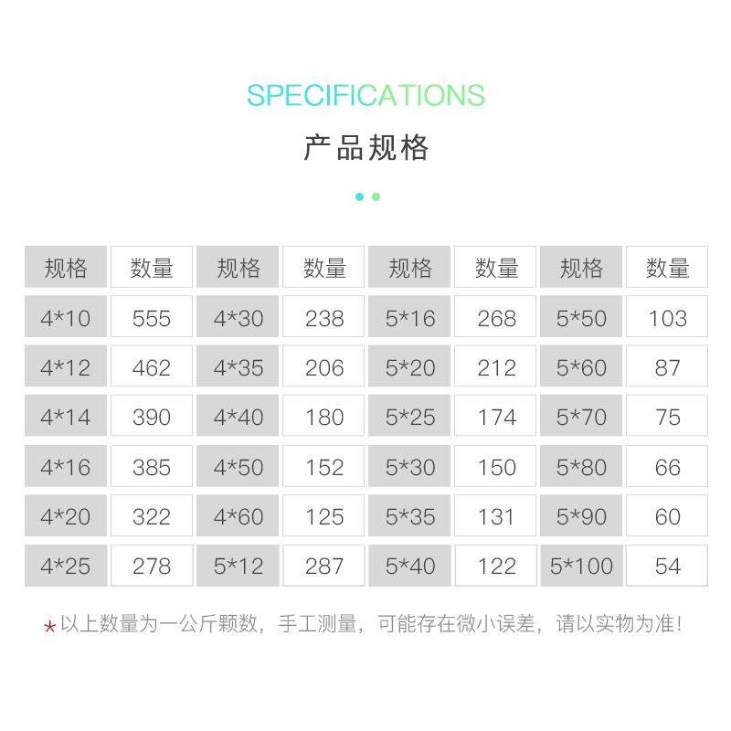 4*10 A catty(about 555 pcs)4*12 a catty(about 462 pcs)4*14 a catty(about 390 pcs)4*16 a catty(about 385 pcs)4*20 a catty(about 385 pcs) 4 * 10 a catty (about 555 pcs) 4 * 12 a catty (about 462 pcs) 4 * 14 a catty (about 390 pcs) 4 * 16 a catty (about