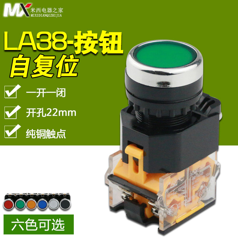 Push button switch Self-locking and self-resetting LA38-11BN Jog button start switch Flat twist round red and green 22mm
