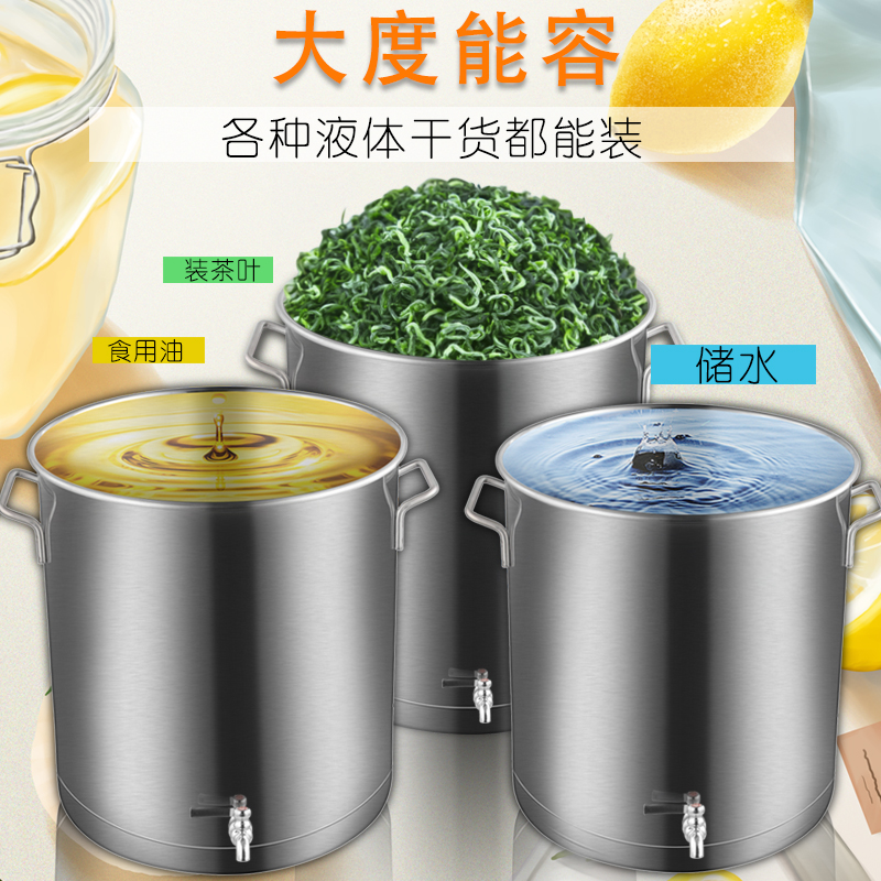 Stainless steel bucket bucket with tap commercial drum 304 with lid thickened with water nozzle cool tea barrel food grade