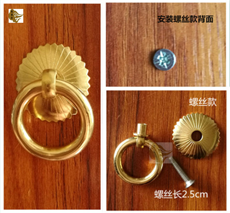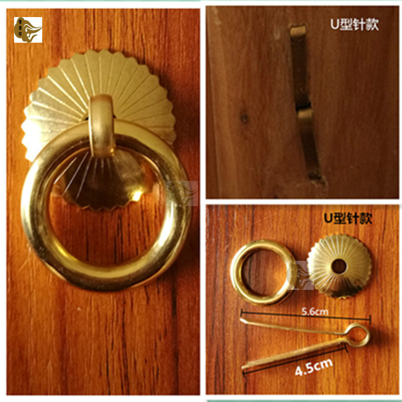 Copper pull ring Chinese antique pure copper furniture cabinet door ring simple copper ring drawer single hole handle integral cabinet door handle