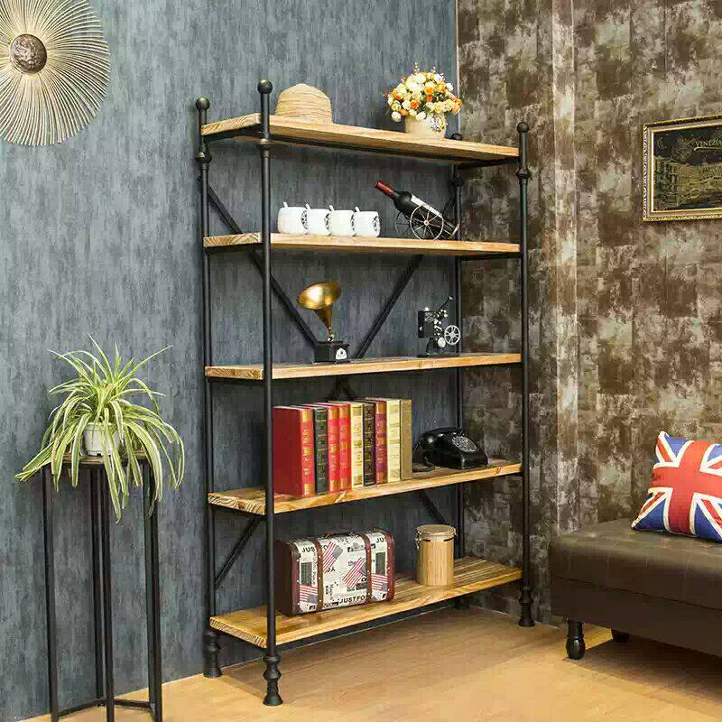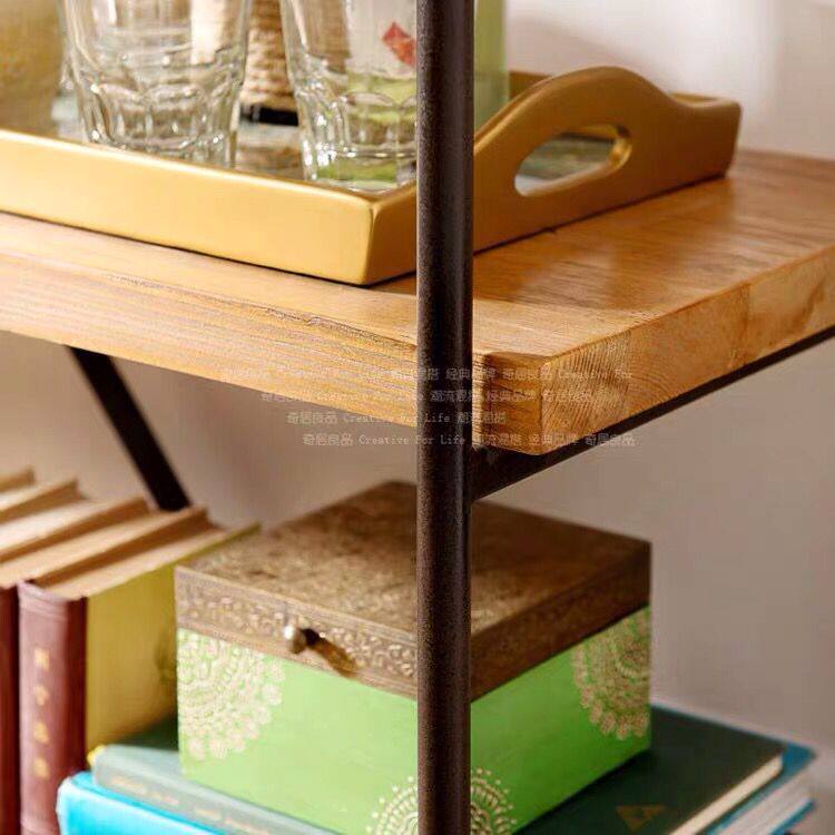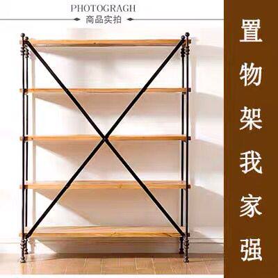 American style wrought iron bookshelf rack retro industrial style multi-layer storage rack to make old solid wood clapboard display cabinet