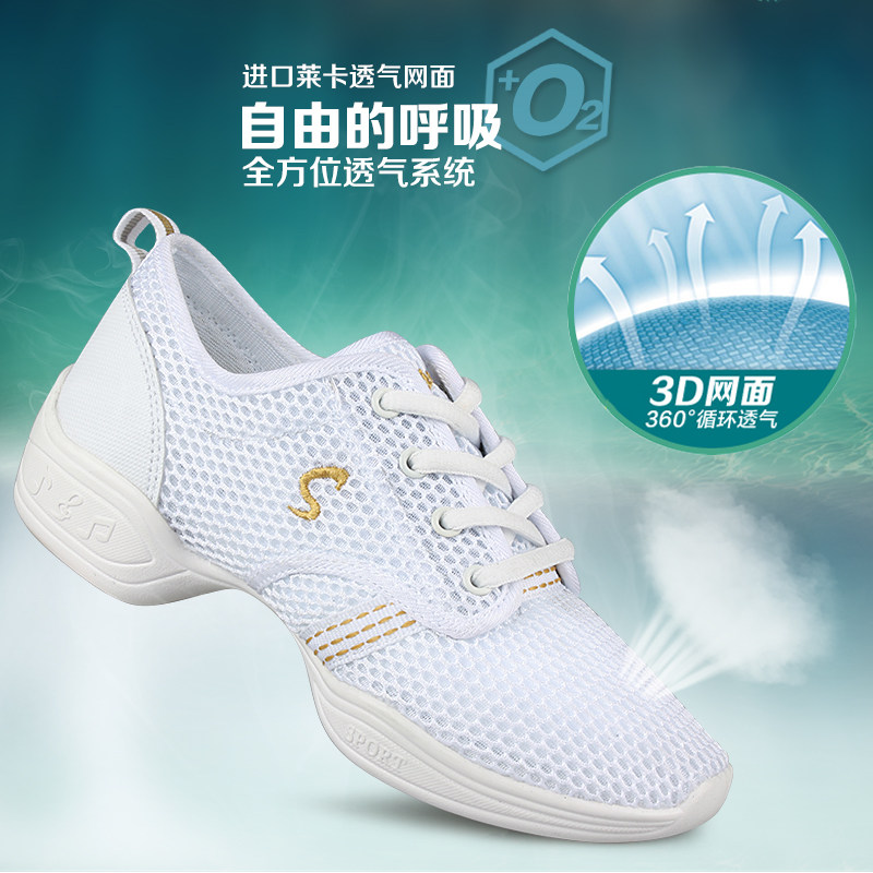 Summer Tennis Noodle Square Dance Shoes Dance Shoes China China China-Laos Shoes Dancing Shoes Soft Bottom Jazz Dance Competition Special White Shoes