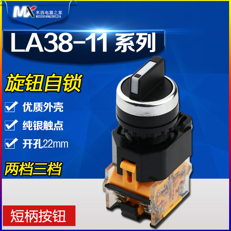 Silver dot LA38-11X2 20X3 knob switch self-lock two-stop three-gear select button drill hole 22MM