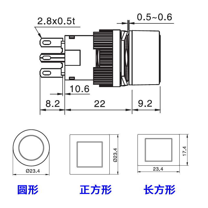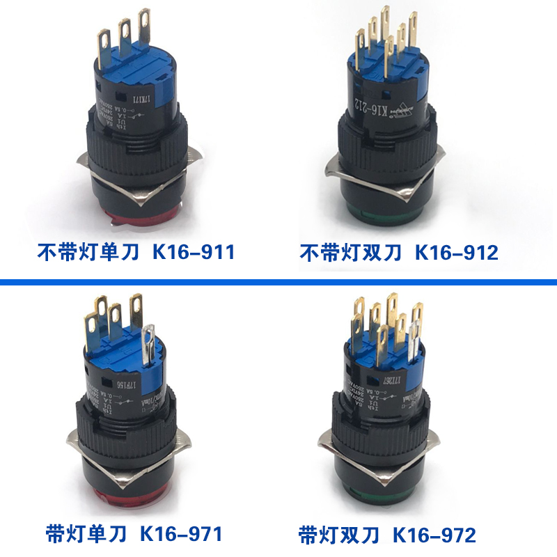 16MM Mushroom Head Button Power Switch Self-Self-Lock Strap Light Red Green Start Round Square Rectangle