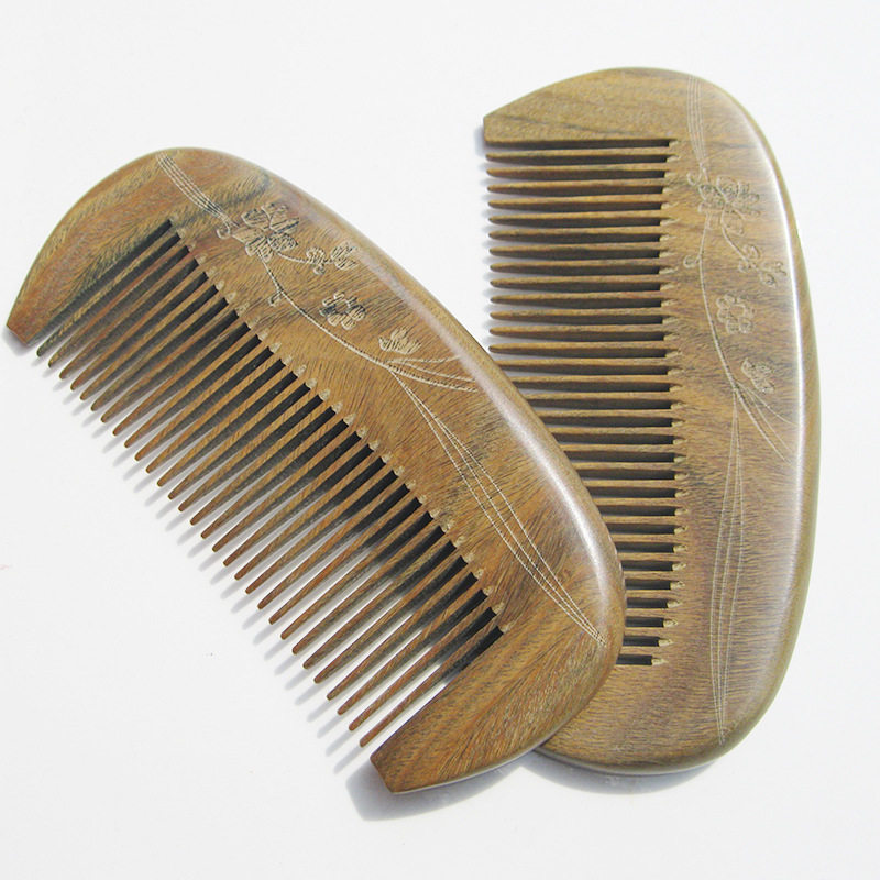 Sandalwood comb series Semi-circular carved sandalwood comb Massage comb Natural sandalwood comb Sessile green sandalwood comb