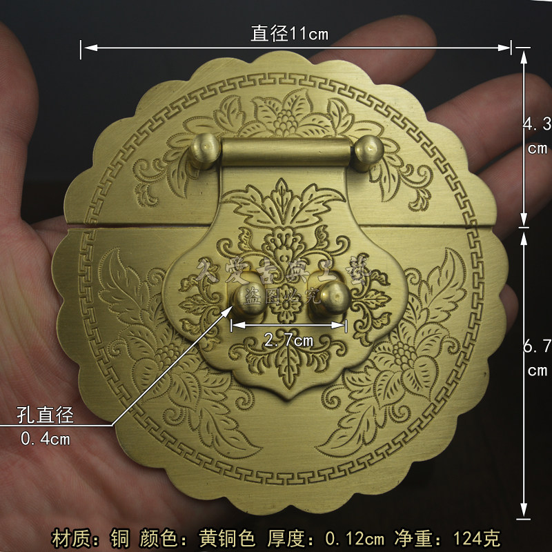 Chinese antique box Cahor box accessories 11cm copper box lock lock old - fashioned furniture retro - card shoe lock nose