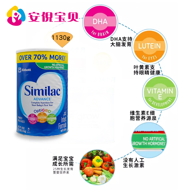 The United States imports the US version of Abbott Similac a golden shield infant formula 1 paragraph milk powder 1130g