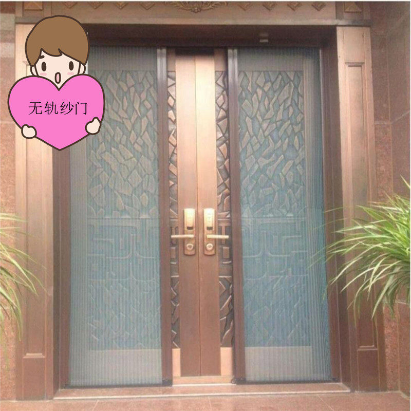 Custom trackless invisible folding screen door Mosquito-proof ventilation screen door Aluminum alloy push-pull telescopic free hole removal and washing