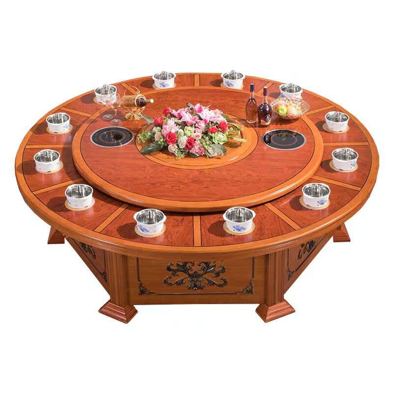 Hot pot table Induction cooker Integrated hotel electric large round table and chair One person one pot hot pot table Smoke-free table Home commercial