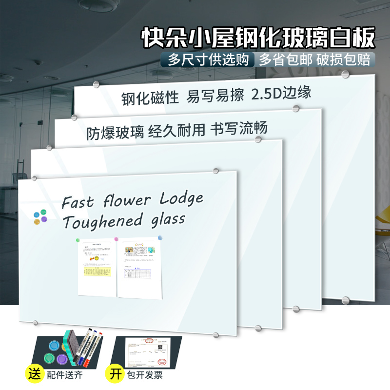 Kuaiduohut tempered glass whiteboard 100cm*150cm can be spliced with strong magnetic hanging office writing whiteboard