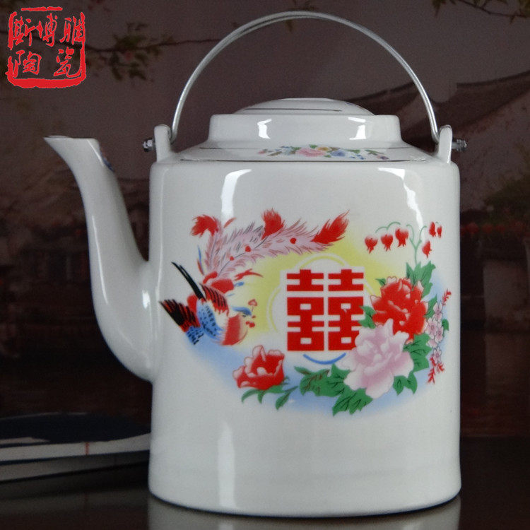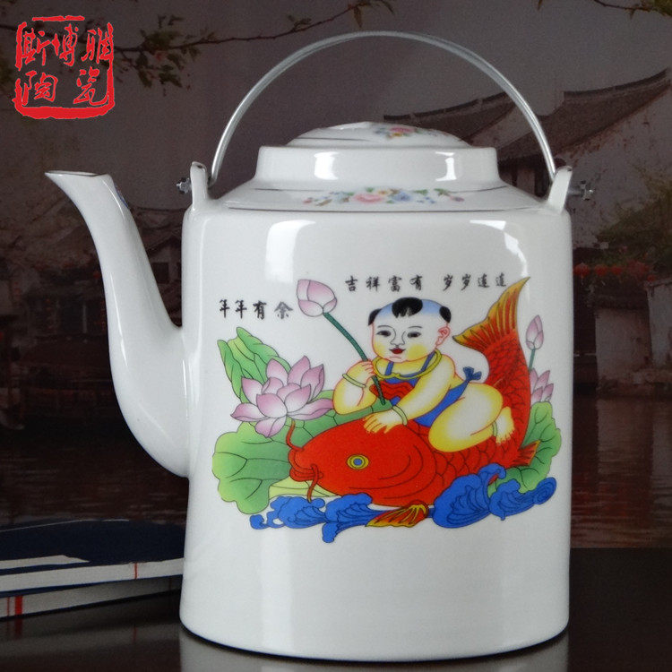 Jingdezhen Ceramic instrumental Tih beam pot large capacity traditional teapot high temperature resistant and explosion-proof old retro cold water kettle