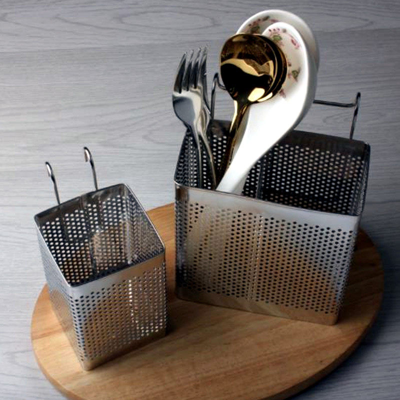 Thickened Stainless Steel Chopstick Cylinder Chopstick Cage Chopstick Cylinder Drain Chopstick Cage Multifunction Wall-mounted shelf Creative Kitchen