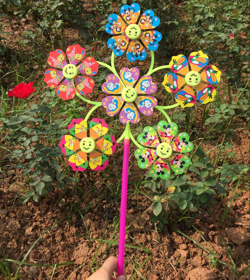 Summer hot selling six cartoon windmill children's toys outdoor play spring tour scenic area square stall supply