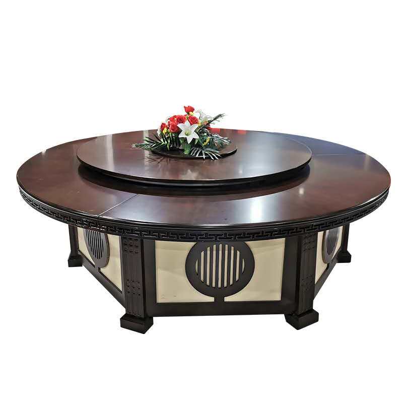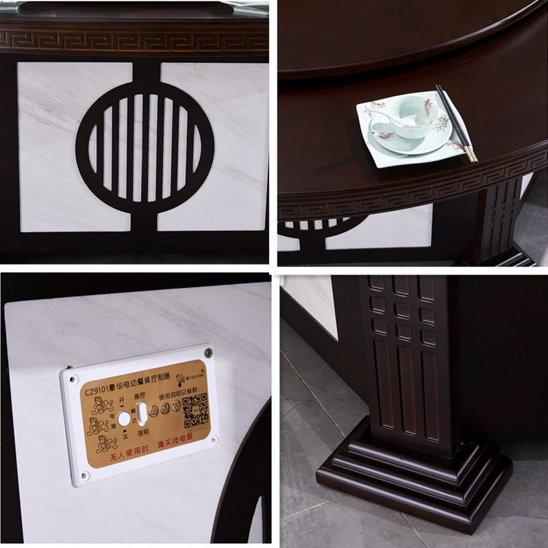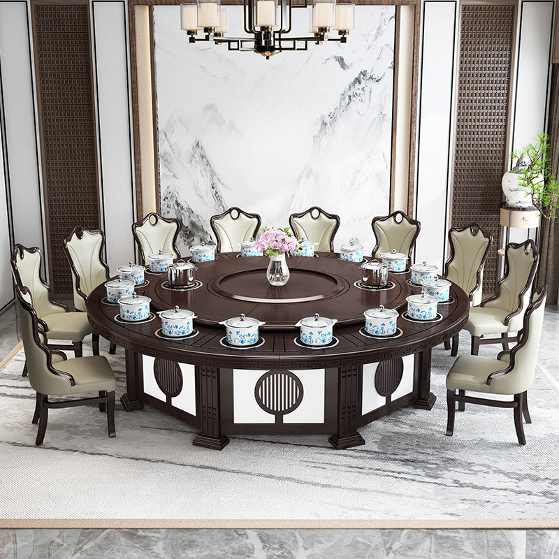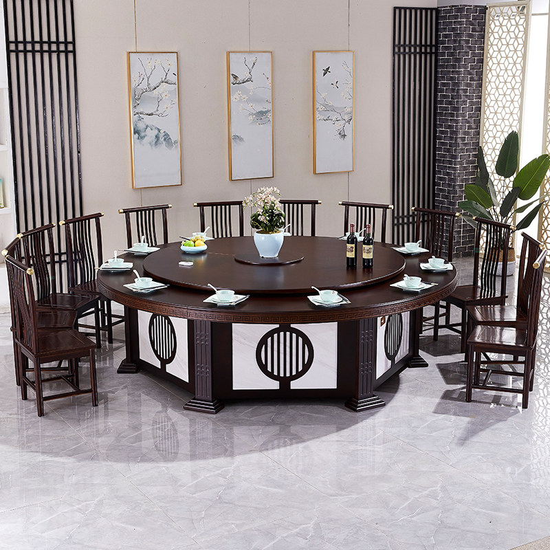 Hotel Electric Dining Table Big Round Table New Chinese Solid Wood Hotpot Table And Chairs Hotel Bag Compartment Automatic Turntable 16 People 20 20