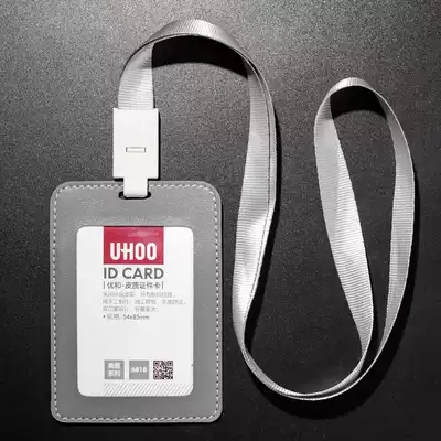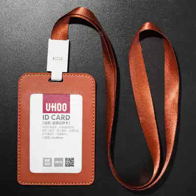 Excellent and high-end leather work certificate card set employee badge access card card bag IC ID chest card lanyard