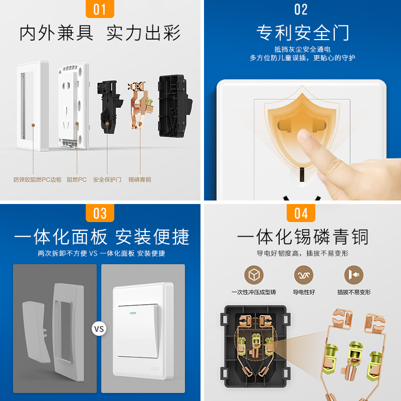 Positive Thai Switch Socket Champagne Gold Triple Open Double Cut Home 86 Switch Panel 3 Open Duplex Power Socket Panel