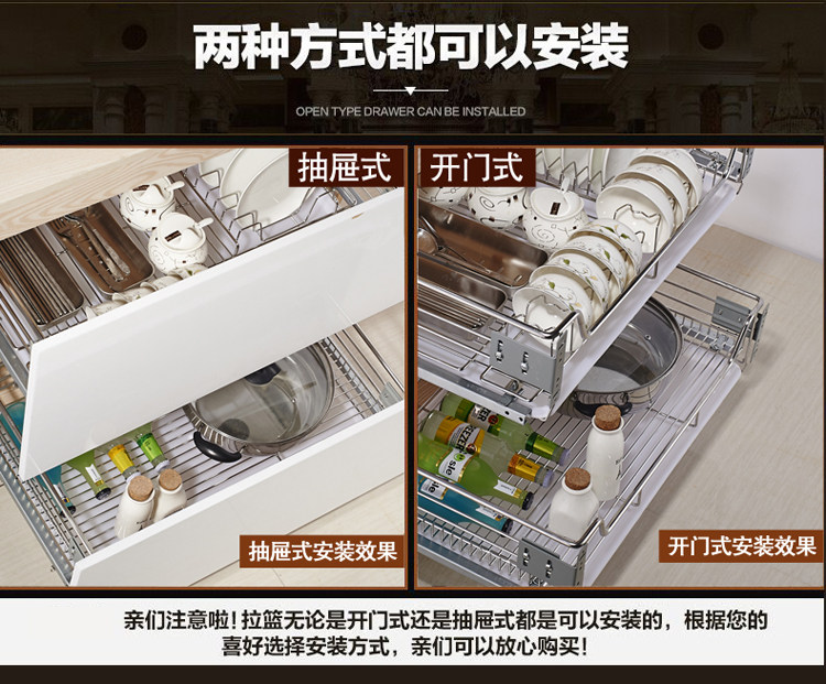 Denis 304 Stainless Steel Pull Basket Kitchen Drawer Bowl Rack Integral Cupboard Double Bowls Dish Basket Damping Track