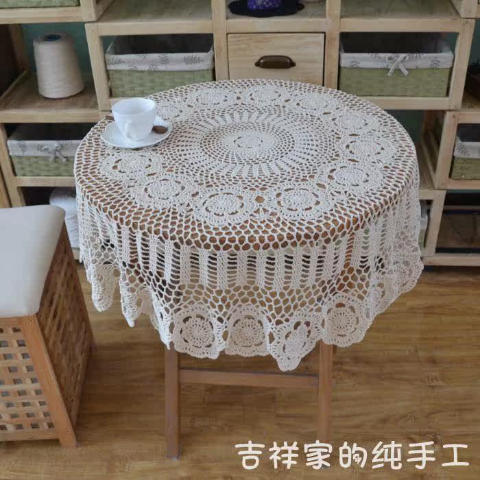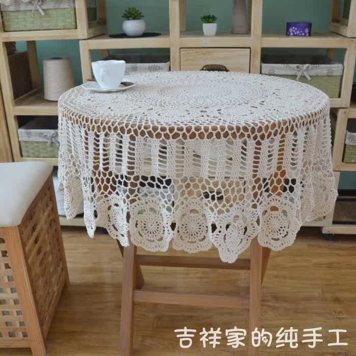 Pure Hand Crochet Hook Flower Round Table Cloth American Nostalgia Pure Cotton Hollowed-out Balcony Tablecloth White Rice Promotion