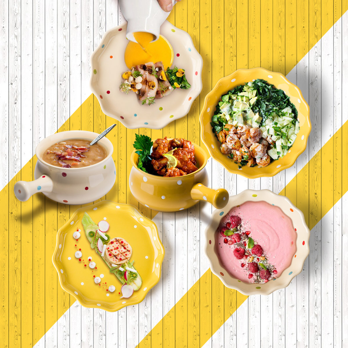 Polka dot bowl Nordic plate Japanese plate Simple couple ceramic tableware set Household cute and good-looking bowl and plate