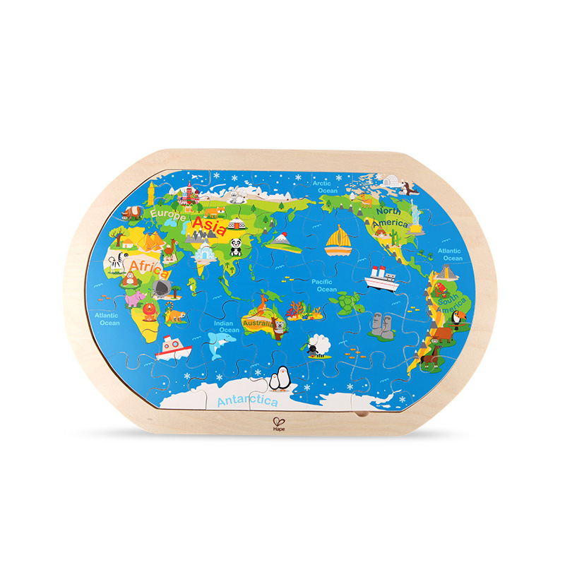 Hape World Map Puzzle Children 3-4-6 Year Old Solid Wooden Jigsaw Babies Early Teach Cognitive Puzzle Toys