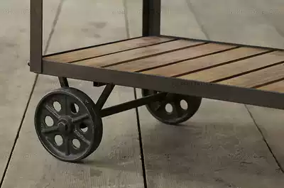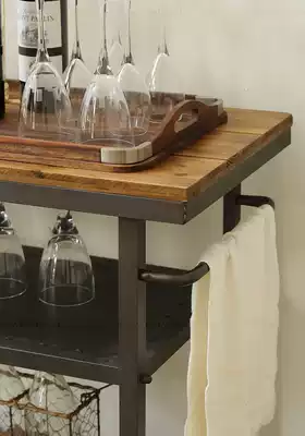 Wrought iron solid wood retro dining car Wine tea trolley three-layer trolley mobile kitchen rack dining cabinet