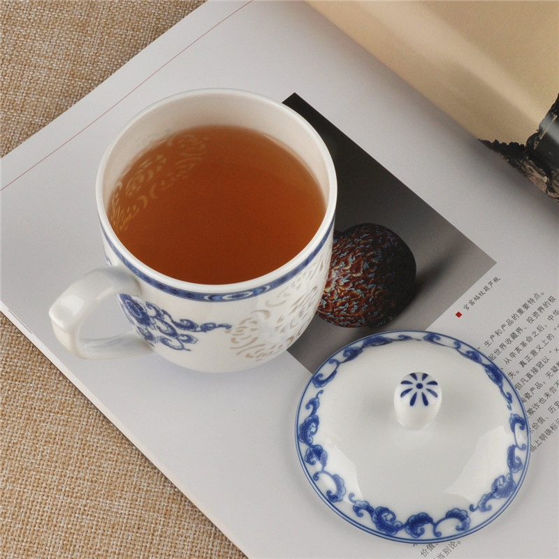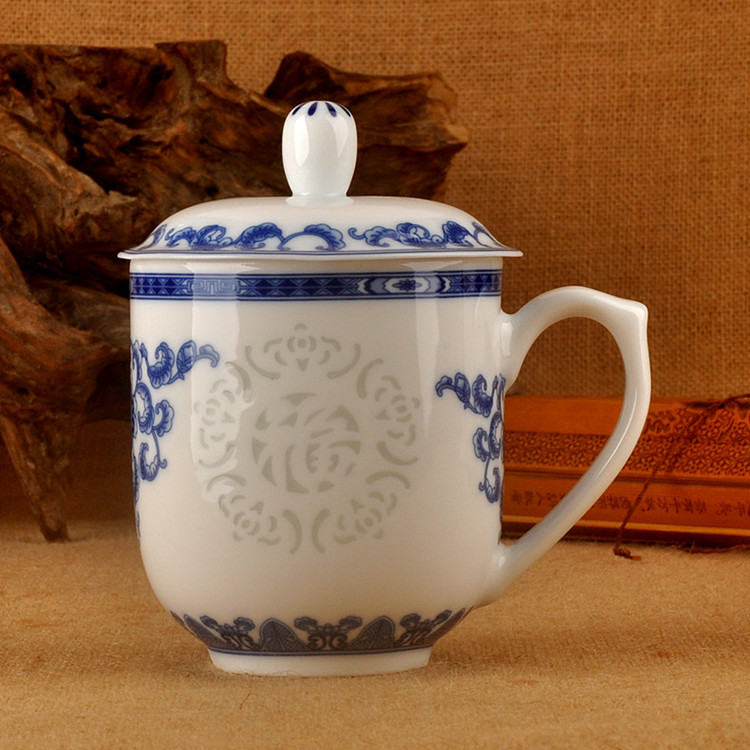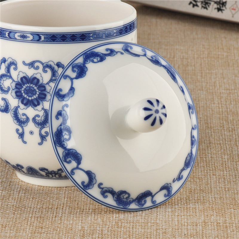 Ceramic cup with lid Jingdezhen Bone Porcelain Green Flower Lingen Tea Cup Office Cup cup Cup Gift Cup