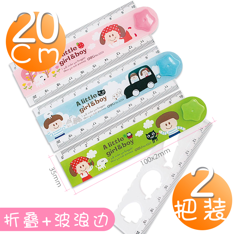 Able Cartoon Creative Wave Side Straight Side Hem Folding Ruler Ruler Student Stationery Color Wave Wire Plastic