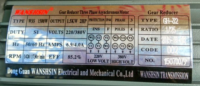 WANSHSIN Wanxin Seiko Gear Reduction Motor Motor 2HP 1 5KW Voltage 220V380V Horizontal